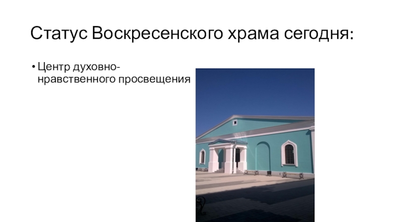 Статус Воскресенского храма сегодня:Центр духовно-нравственного просвещения
