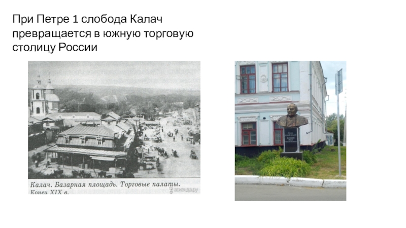 Слайд 9При Петре 1 слобода Калач превращается в южную торговую столицу России