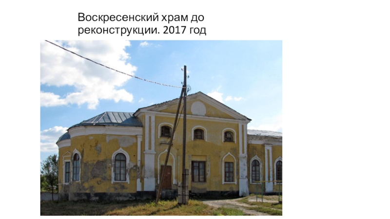 Слайд 21Воскресенский храм до реконструкции. 2017 год
