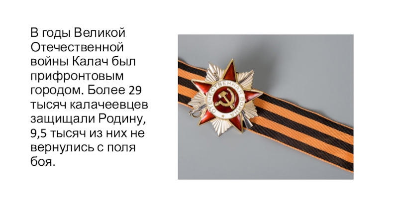 Слайд 16В годы Великой Отечественной войны Калач был прифронтовым городом. Более 29