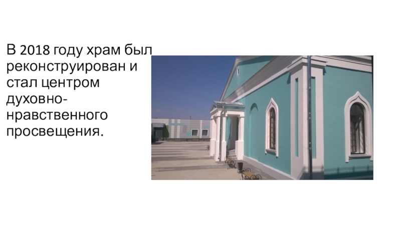 Слайд 22В 2018 году храм был реконструирован и стал центром духовно-нравственного просвещения.