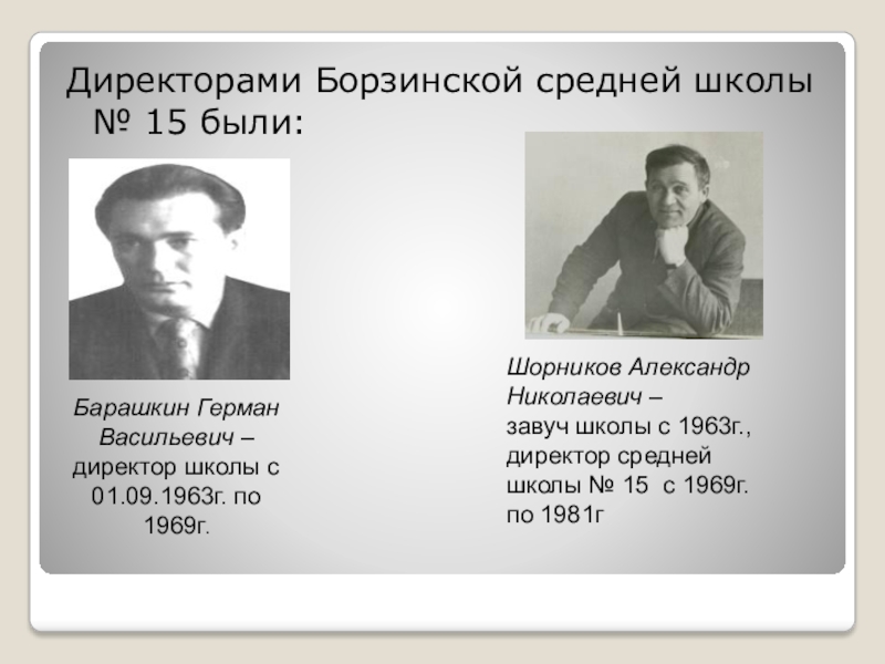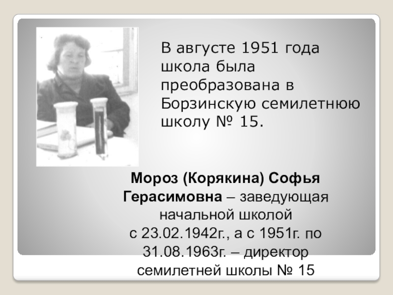 с 23.02.1942г., а с 1951г. по 31.08.1963г. – директор семилетней школы № 15