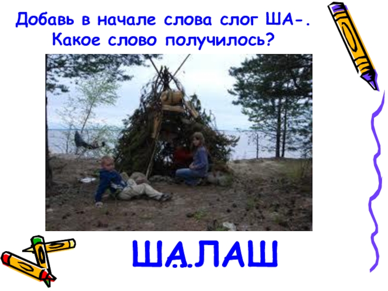 Слайд 5Добавь в начале слова слог ША-. Какое слово получилось?