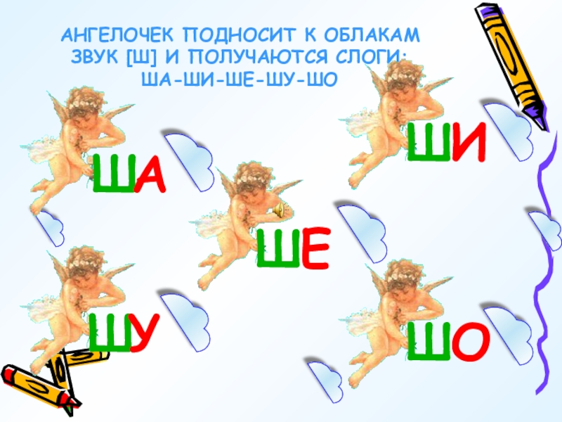 АНГЕЛОЧЕК ПОДНОСИТ К ОБЛАКАМ ЗВУК [Ш] И ПОЛУЧАЮТСЯ СЛОГИ: