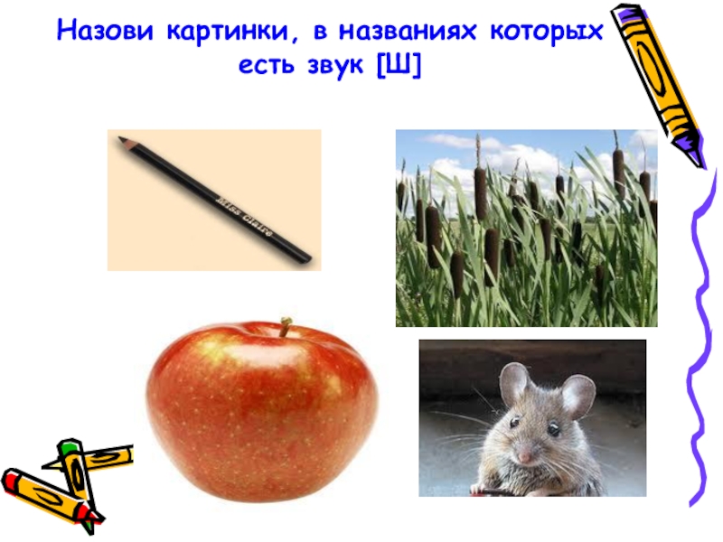 Слайд 9Назови картинки, в названиях которых есть звук [Ш]