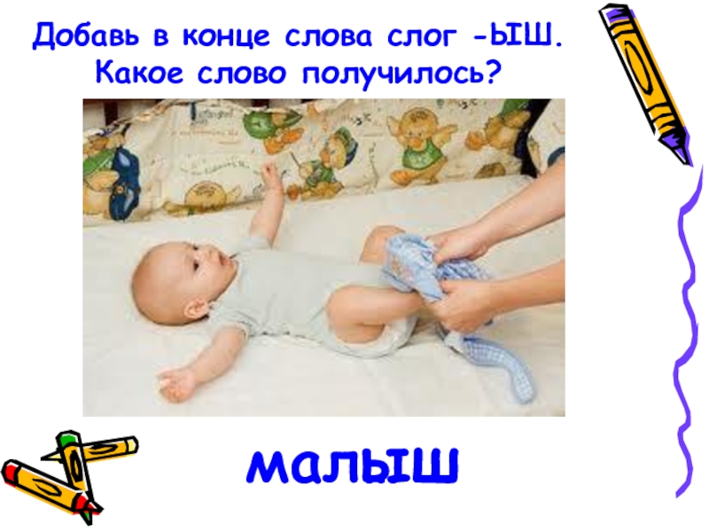 Слайд 7Добавь в конце слова слог -ЫШ. Какое слово получилось?