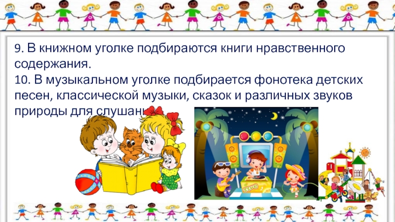 Слайд 149. В книжном уголке подбираются книги нравственного содержания.