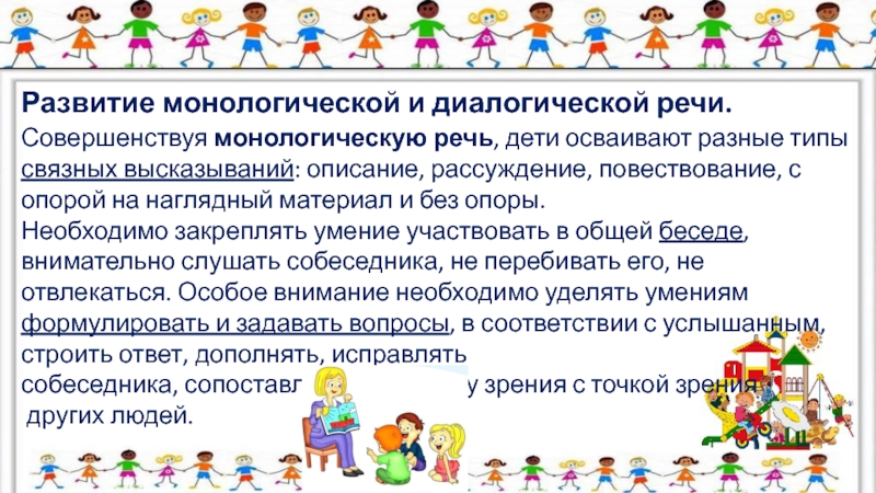 Слайд 8Развитие монологической и диалогической речи.