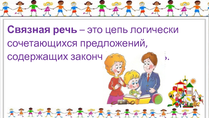 Слайд 3Связная речь – это цепь логически сочетающихся предложений, содержащих законченную мысль.