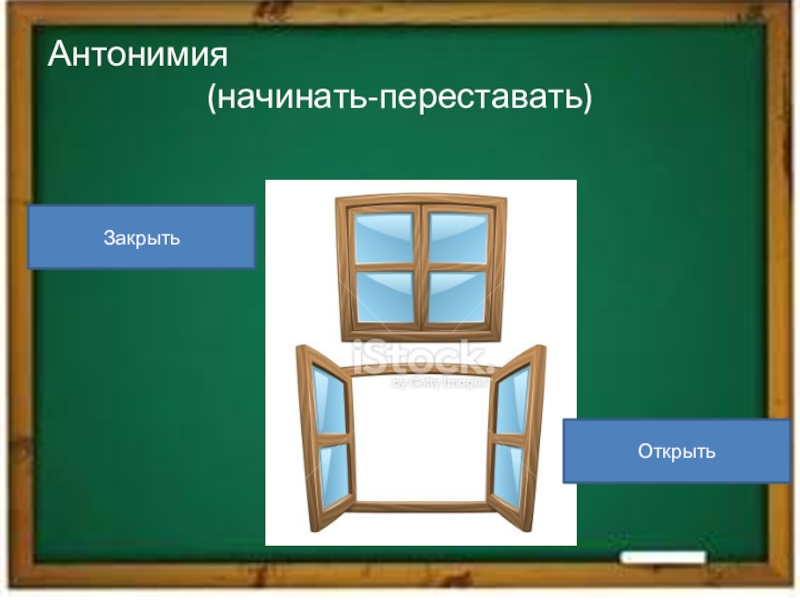 Антонимия(начинать-переставать)ЗакрытьОткрыть