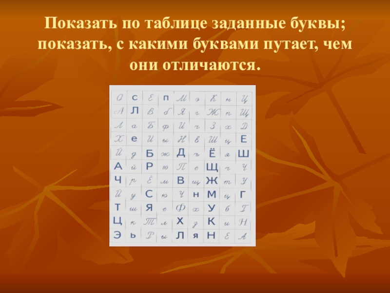 Показать по таблице заданные буквы; показать, с какими буквами путает, чем