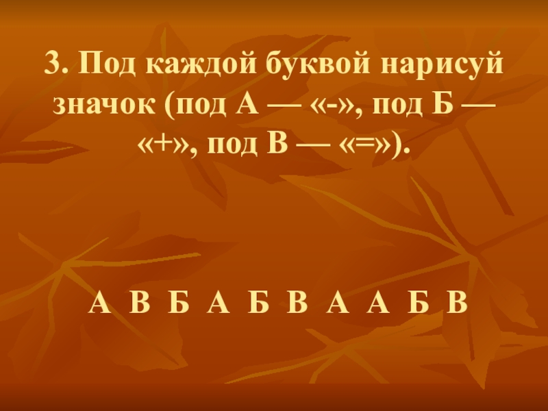 Слайд 283. Под каждой буквой нарисуй значок (под А — «-», под