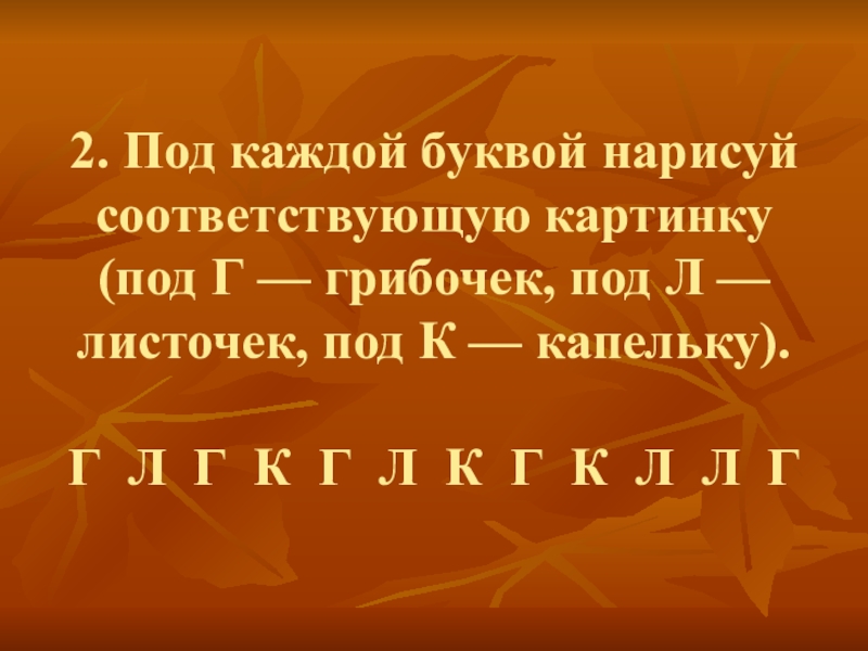 2. Под каждой буквой нарисуй соответствующую картинку (под Г — грибочек,