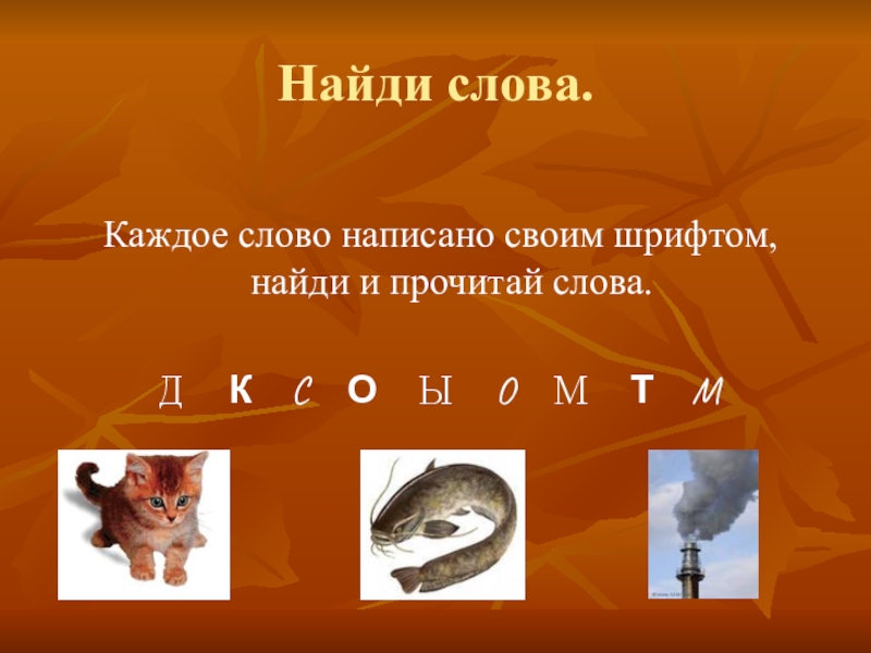 Каждое слово написано своим шрифтом, найди и прочитай слова.