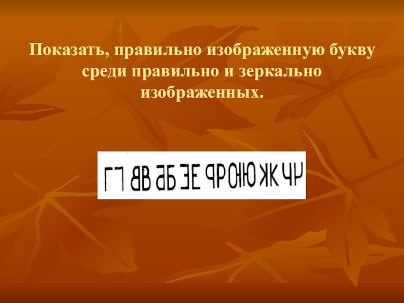 Показать, правильно изображенную букву среди правильно и зеркально изображенных.