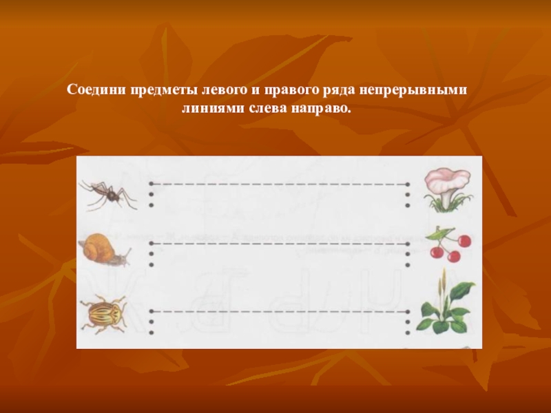 Слайд 22Соедини предметы левого и правого ряда непрерывными линиями слева направо.