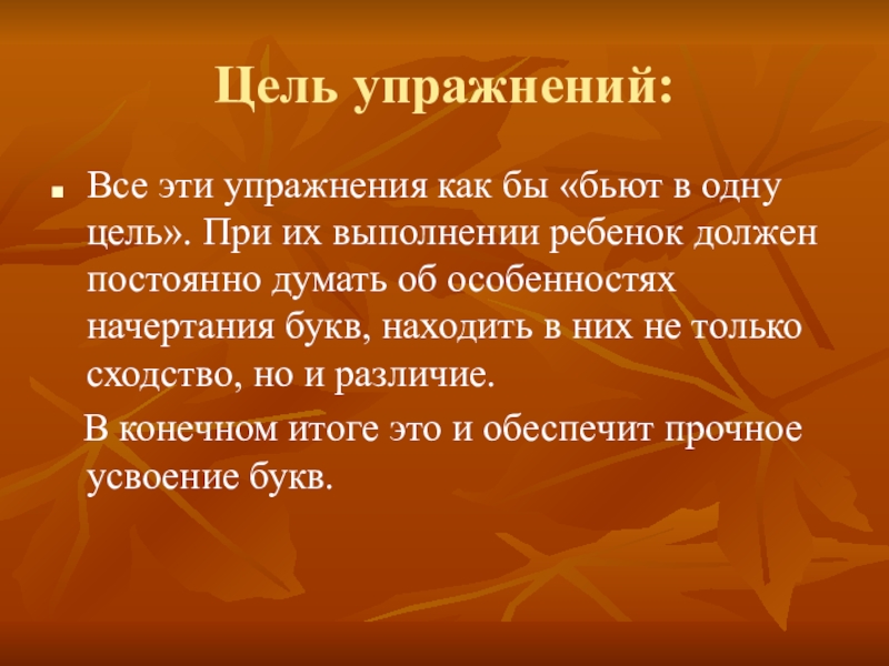 их выполнении ребенок должен постоянно думать об особенностях начертания букв, находить в них не только сходство, но и различие.