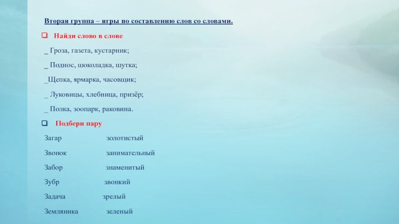 Слайд 8Вторая группа – игры по составлению слов со словами.