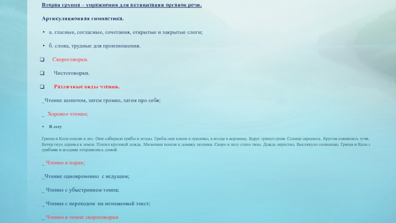 Слайд 14Вторая группа – упражнения для активизации органов речи.