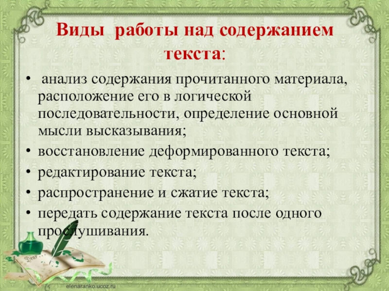 отбор языковых средств для построения высказывания в тех или иных целях общения (доказательство, рассуждение, передача содержания текста, сюжетной картинки).
