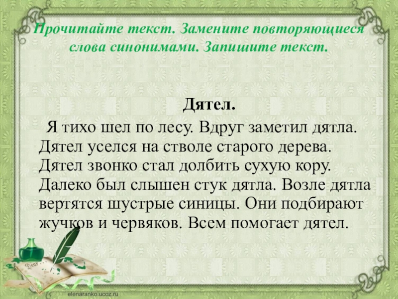 Прочитайте текст. Замените повторяющиеся слова синонимами. Запишите текст.