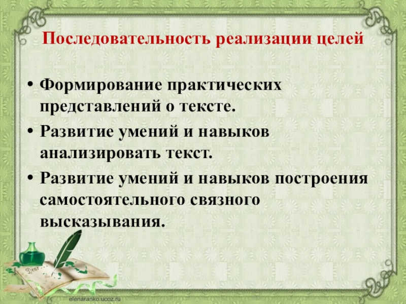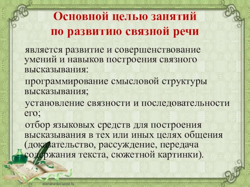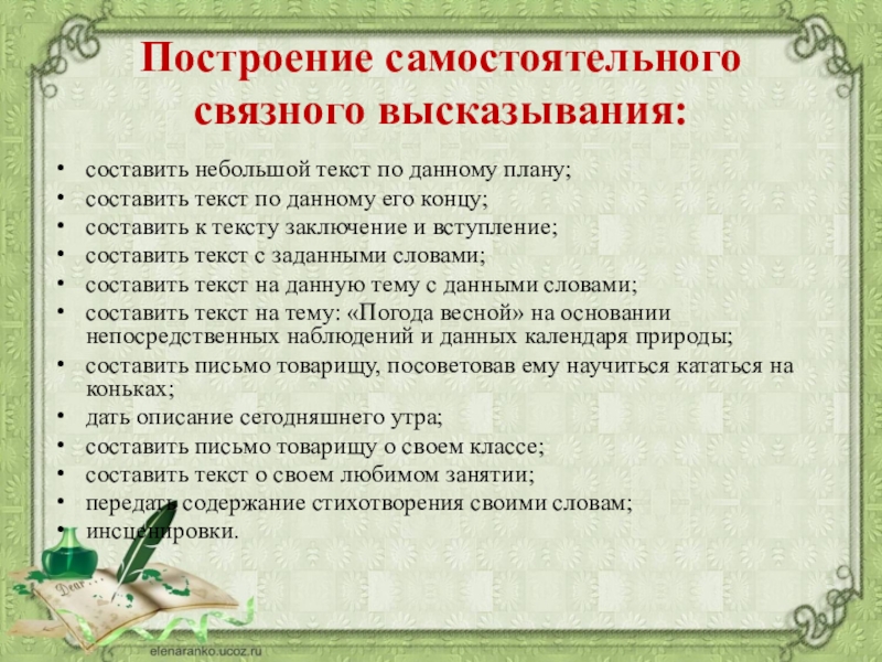 Развитие умений и навыков построения самостоятельного связного высказывания.
