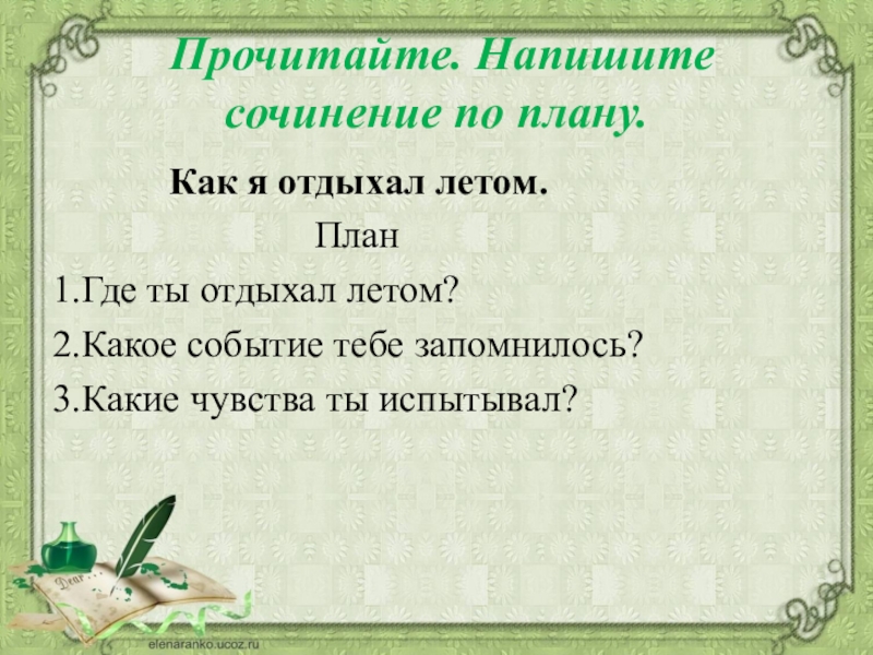Слайд 15 Прочитайте. Напишите сочинение по плану.