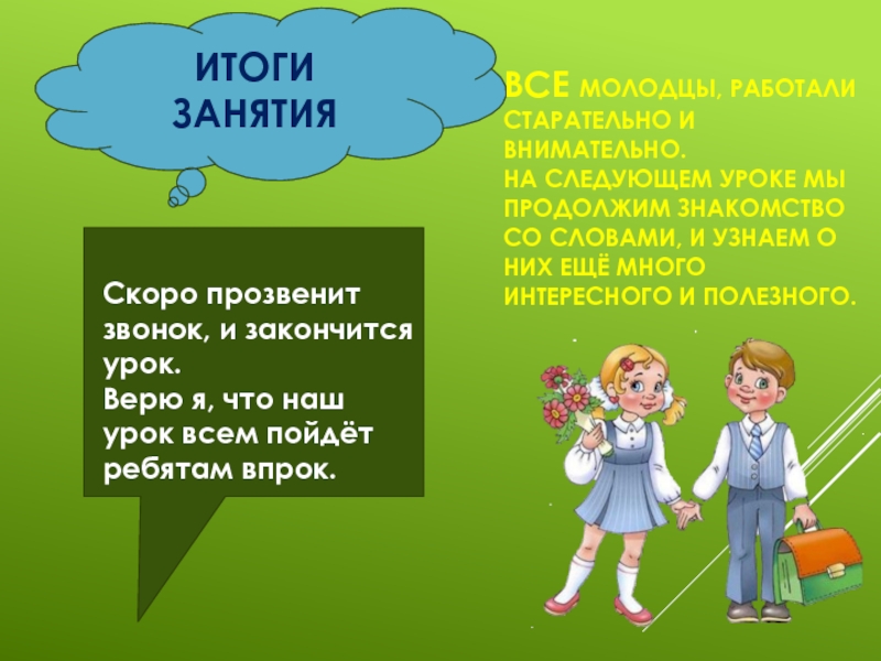 Верю я, что наш урок всем пойдёт ребятам впрок.