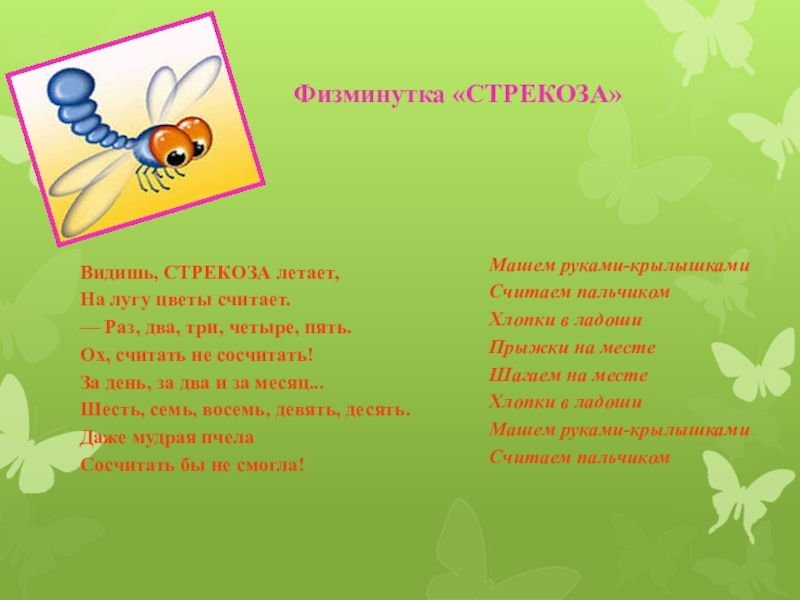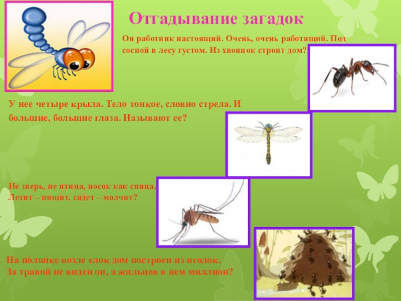 У нее четыре крыла. Тело тонкое, словно стрела. И большие, большие глаза. Называют ее?