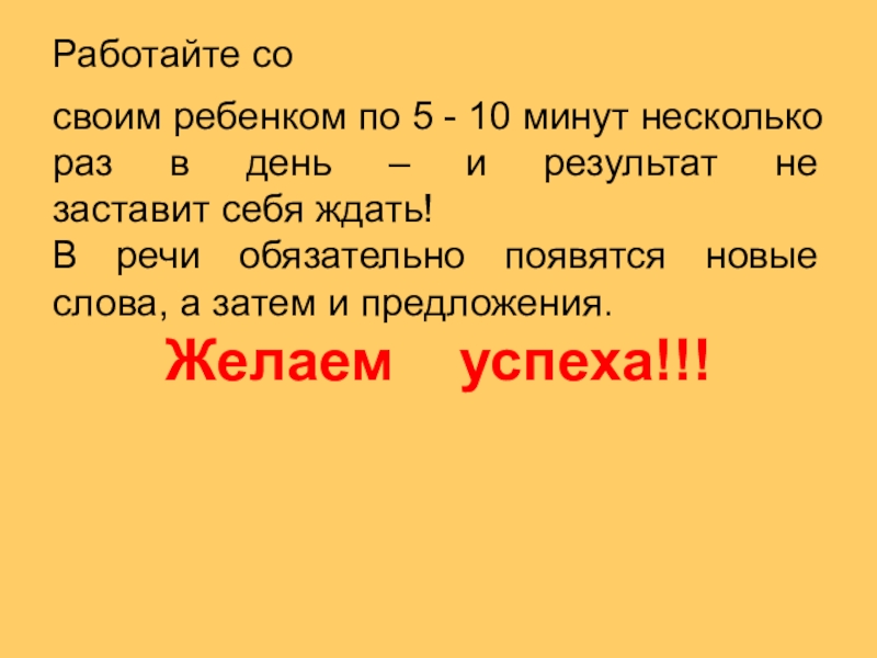 Работайте со своим ребенком по 5 - 10 минут несколько раз в день – и результат не