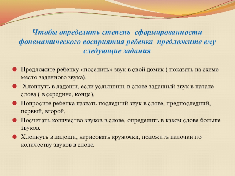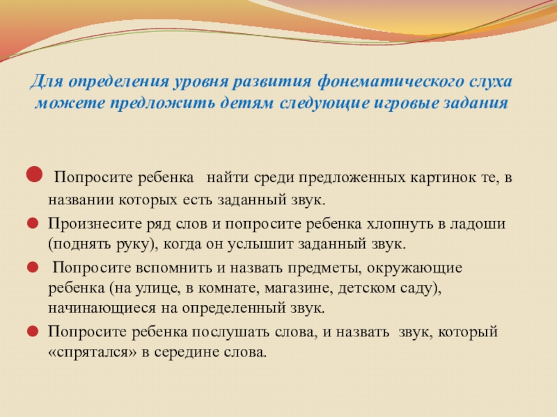 Произнесите ряд слов и попросите ребенка хлопнуть в ладоши (поднять руку), когда он услышит заданный звук.