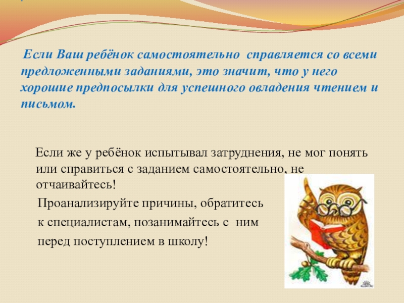Если же у ребёнок испытывал затруднения, не мог понять или справиться с заданием самостоятельно, не отчаивайтесь!