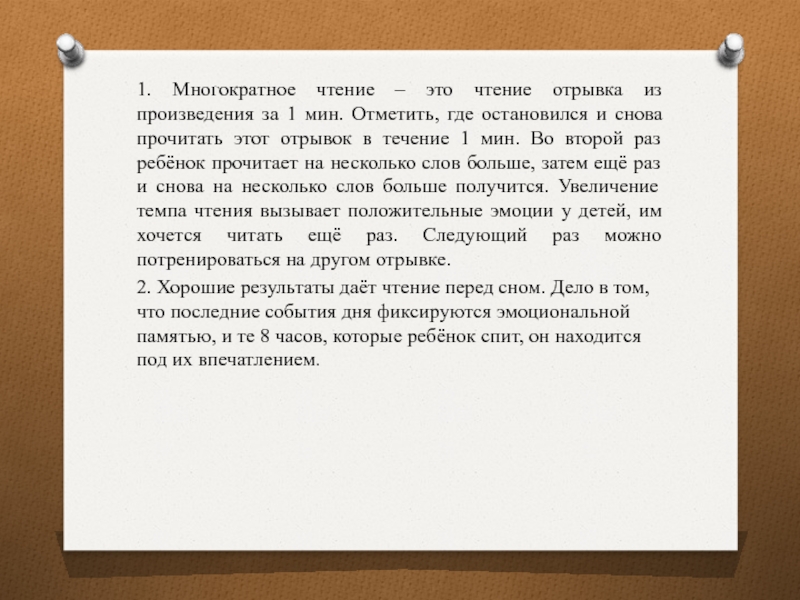 Слайд 211. Многократное чтение – это чтение отрывка из произведения за 1