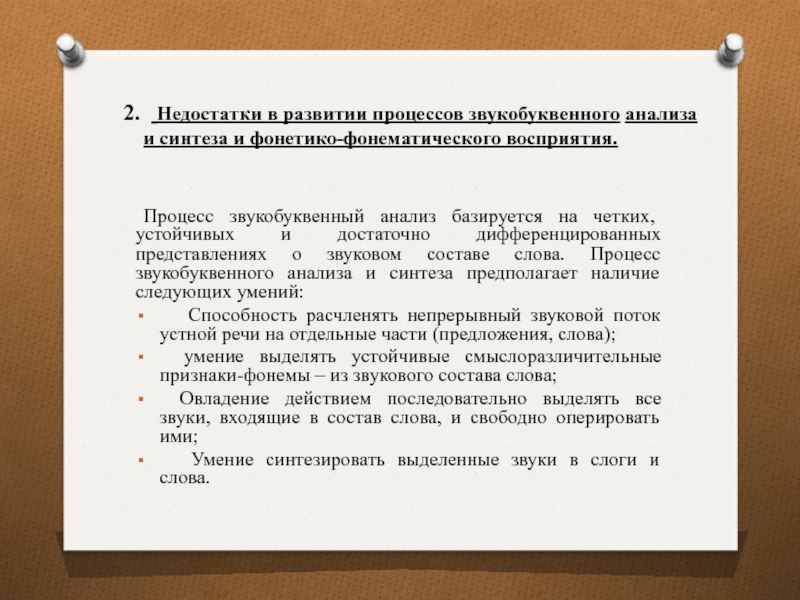 Слайд 82. Недостатки в развитии процессов звукобуквенного анализа и синтеза и фонетико-фонематического