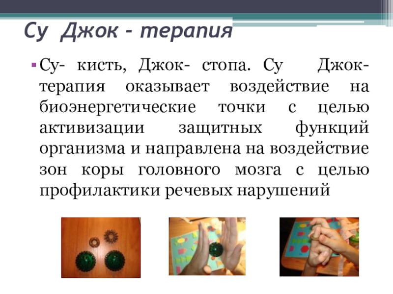 Су Джок - терапия Су- кисть, Джок- стопа. Су  Джок- терапия оказывает воздействие на биоэнергетические точки