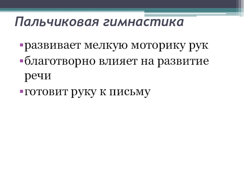 Пальчиковая гимнастика развивает мелкую моторику рукблаготворно влияет на развитие речиготовит руку к письму