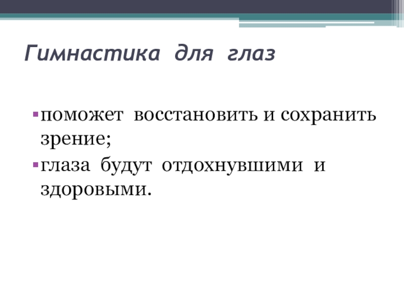 Гимнастика для глаз поможет восстановить и сохранить зрение;глаза будут отдохнувшими и здоровыми.