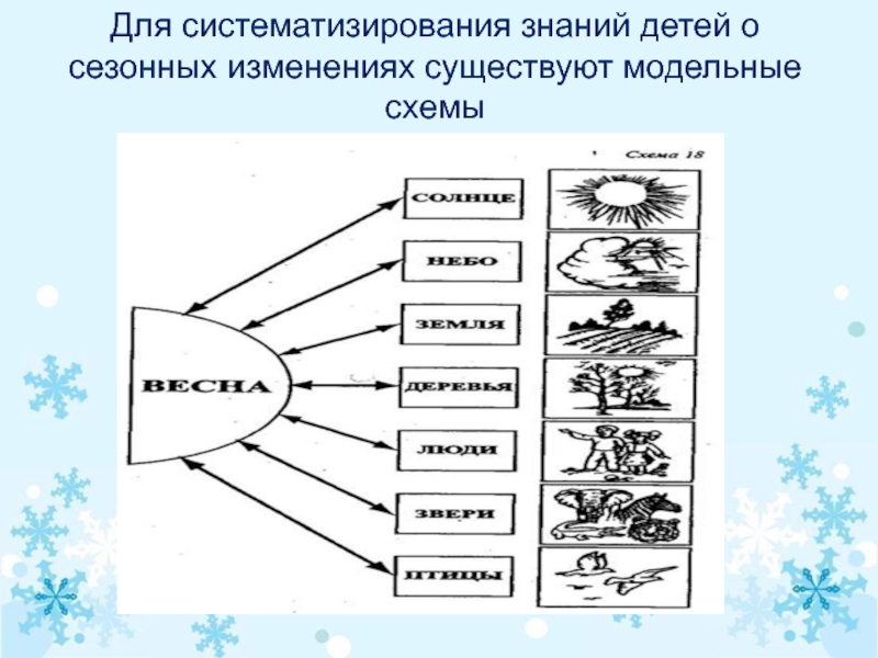 Слайд 14Для систематизирования знаний детей о сезонных изменениях существуют модельные схемы