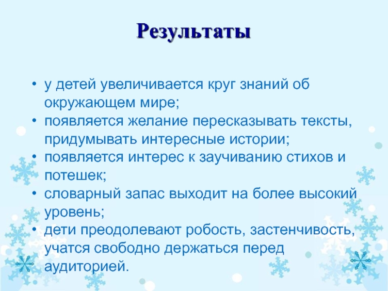 Слайд 19у детей увеличивается круг знаний об окружающем мире;
