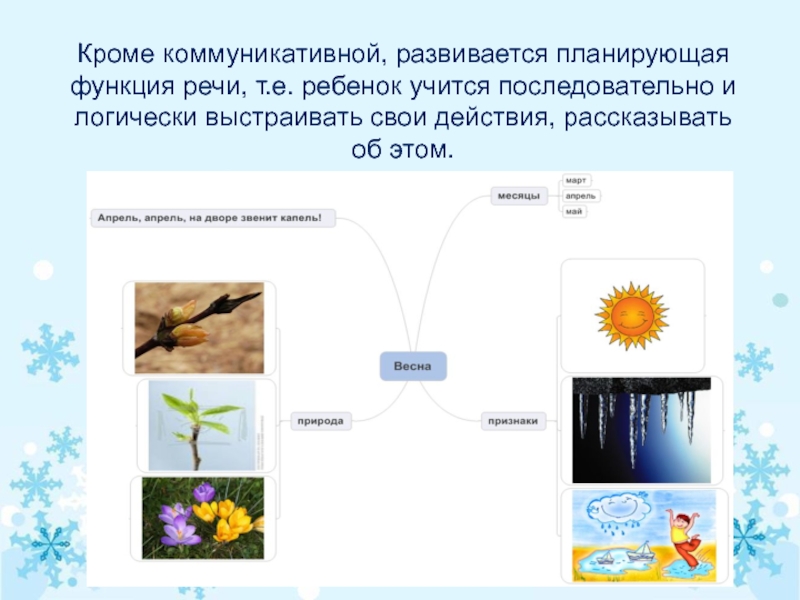 Слайд 17Кроме коммуникативной, развивается планирующая функция речи, т.е. ребенок учится последовательно и