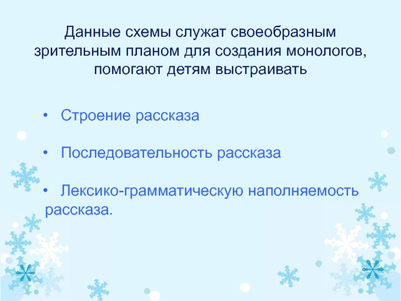 Слайд 15Данные схемы служат своеобразным зрительным планом для создания монологов, помогают детям