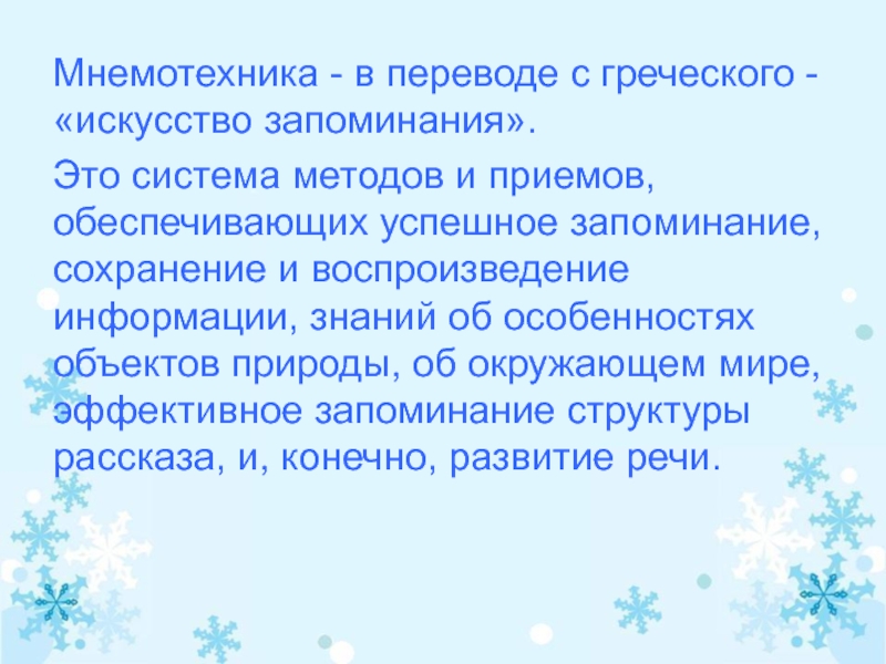 Мнемотехника - в переводе с греческого - «искусство запоминания».