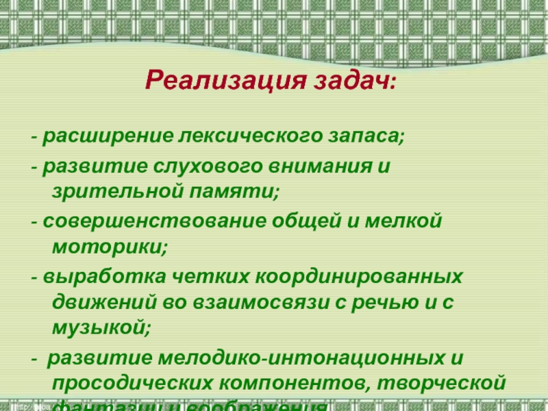 Реализация задач:
