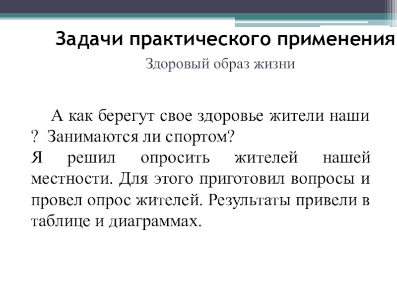 Я решил опросить жителей нашей местности. Для этого приготовил вопросы и провел опрос жителей. Результаты привели в таблице и диаграммах.
