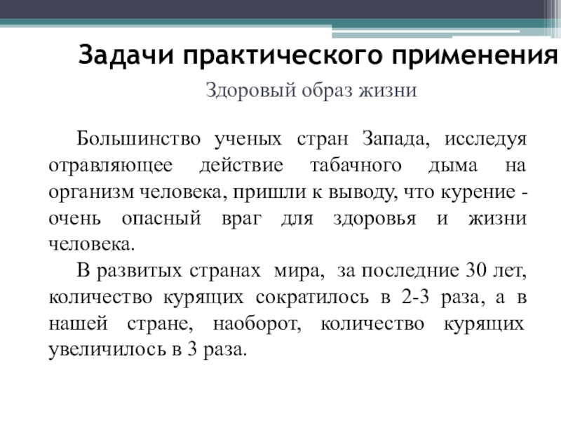 В развитых странах мира, за последние 30 лет, количество курящих сократилось в 2-3 раза, а в нашей стране, наоборот, количество курящих увеличилось в 3 раза.