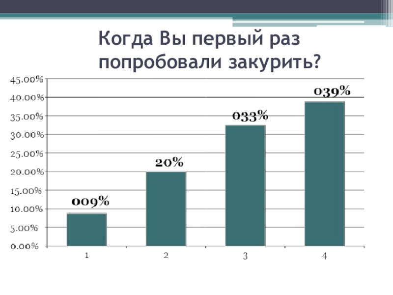 Слайд 21Когда Вы первый раз попробовали закурить?
