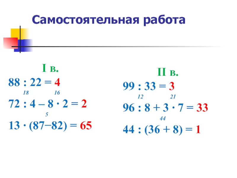 96 : 8 + 3 ∙ 7 = 33