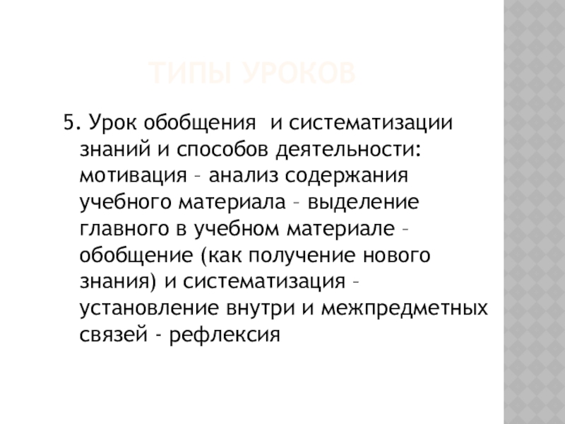 5. Урок обобщения и систематизации знаний и способов деятельности: мотивация