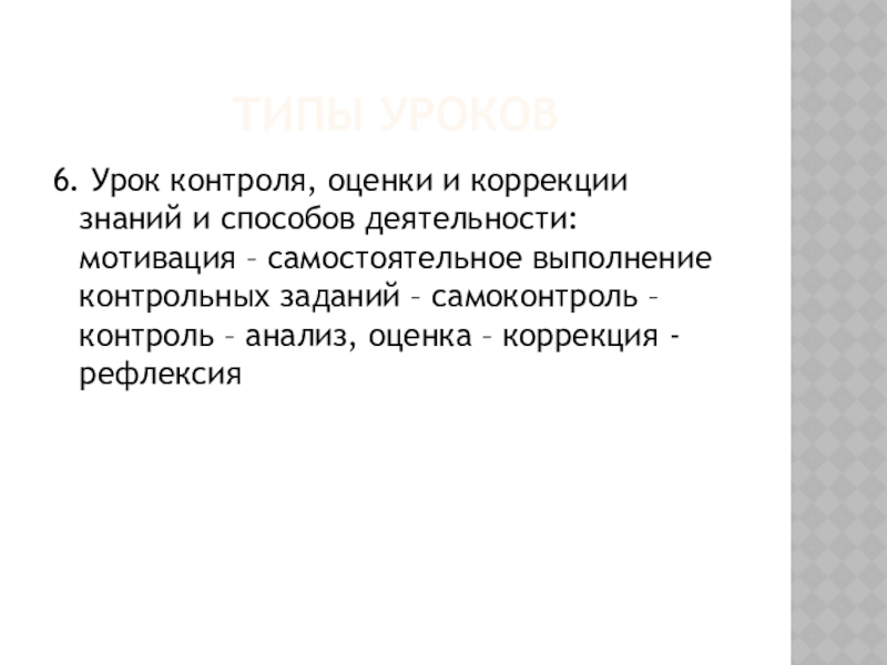 6. Урок контроля, оценки и коррекции знаний и способов деятельности:
