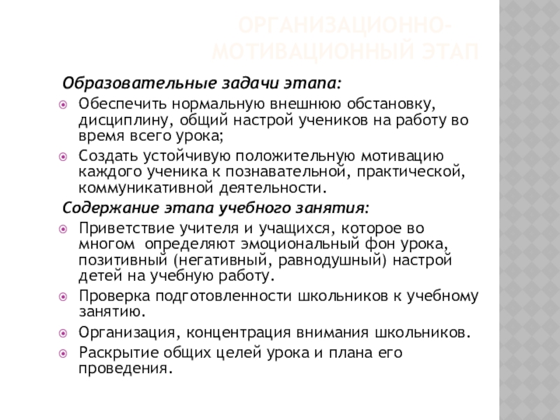 Слайд 12ОРГАНИЗАЦИОННО-МОТИВАЦИОННЫЙ ЭТАП